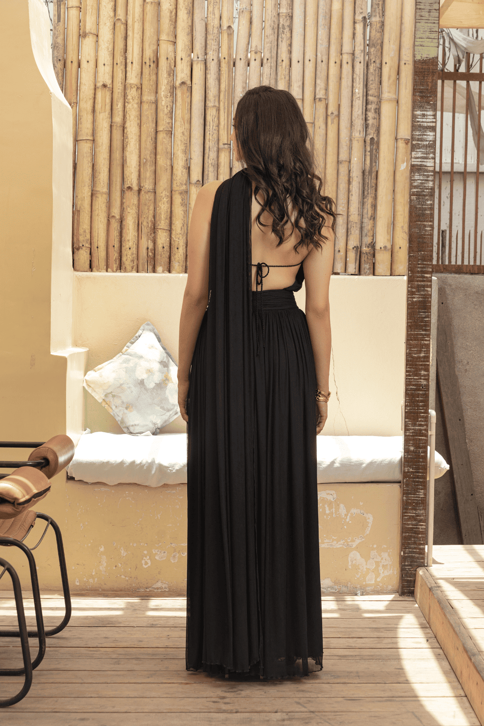 Noir chic/ Multi-Way Black Net Maxi Dress