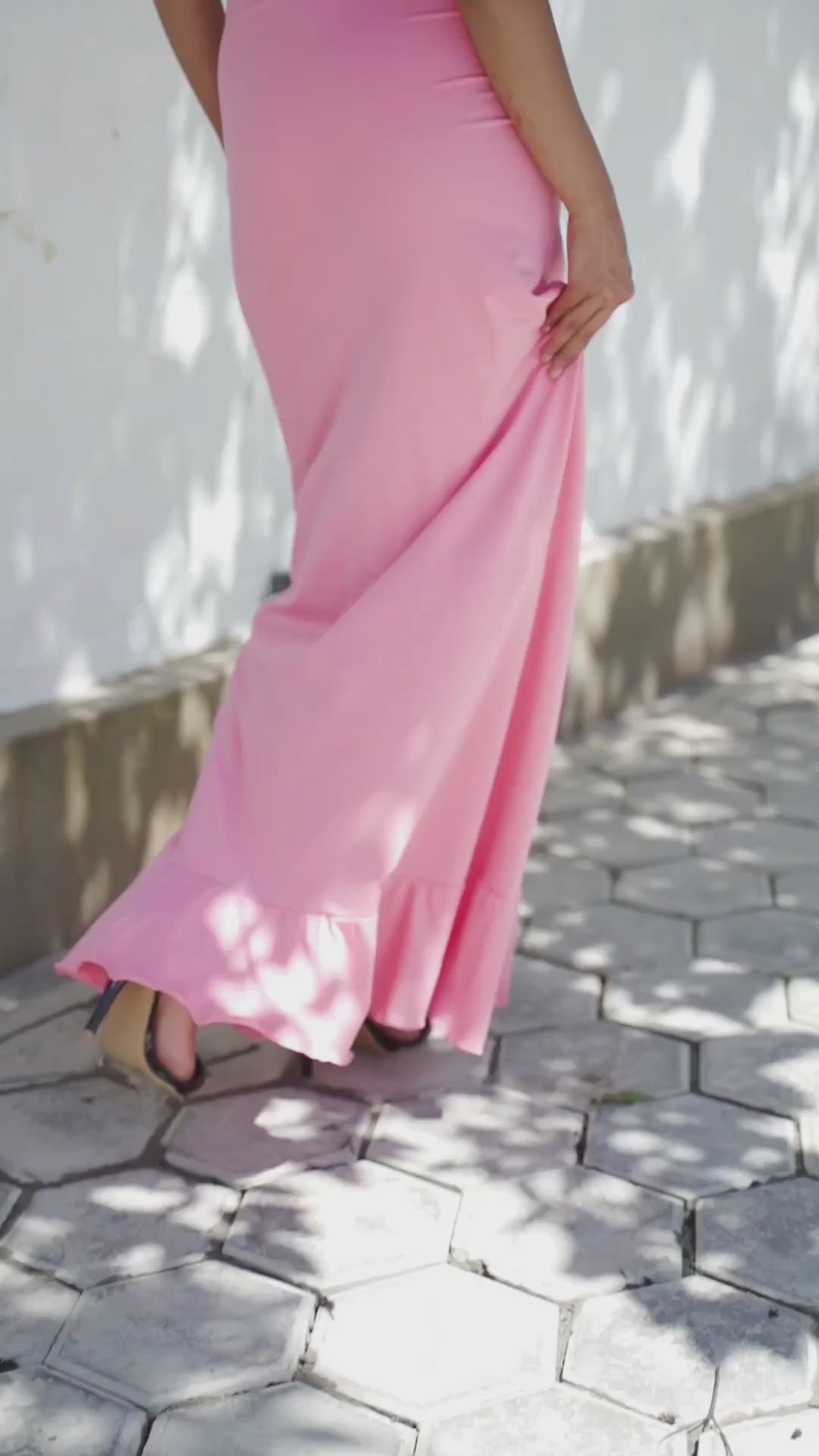 Meet your new go-to for romantic evenings: our Baby Pink Maxi Dress. This dress is designed with thoughtful details like a self-tie neckline that lets you adjust the fit to your liking, and a subtle keyhole cut-out that adds just a hint of intrigue. The ruching down the front is both stylish and flattering, hugging your curves in all the right places. Crafted from premium stretch solton fabric, this dress feels as luxurious as it looks. Whether you’re dressing it up with gold accessories for a date night or keeping it simple for a daytime event, this maxi is sure to make you feel stunning.