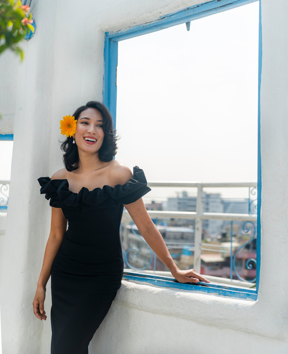 - Ruffled Detailing: Features layered, cascading ruffles that create a dynamic and playful texture, enhancing the dress’s visual appeal.