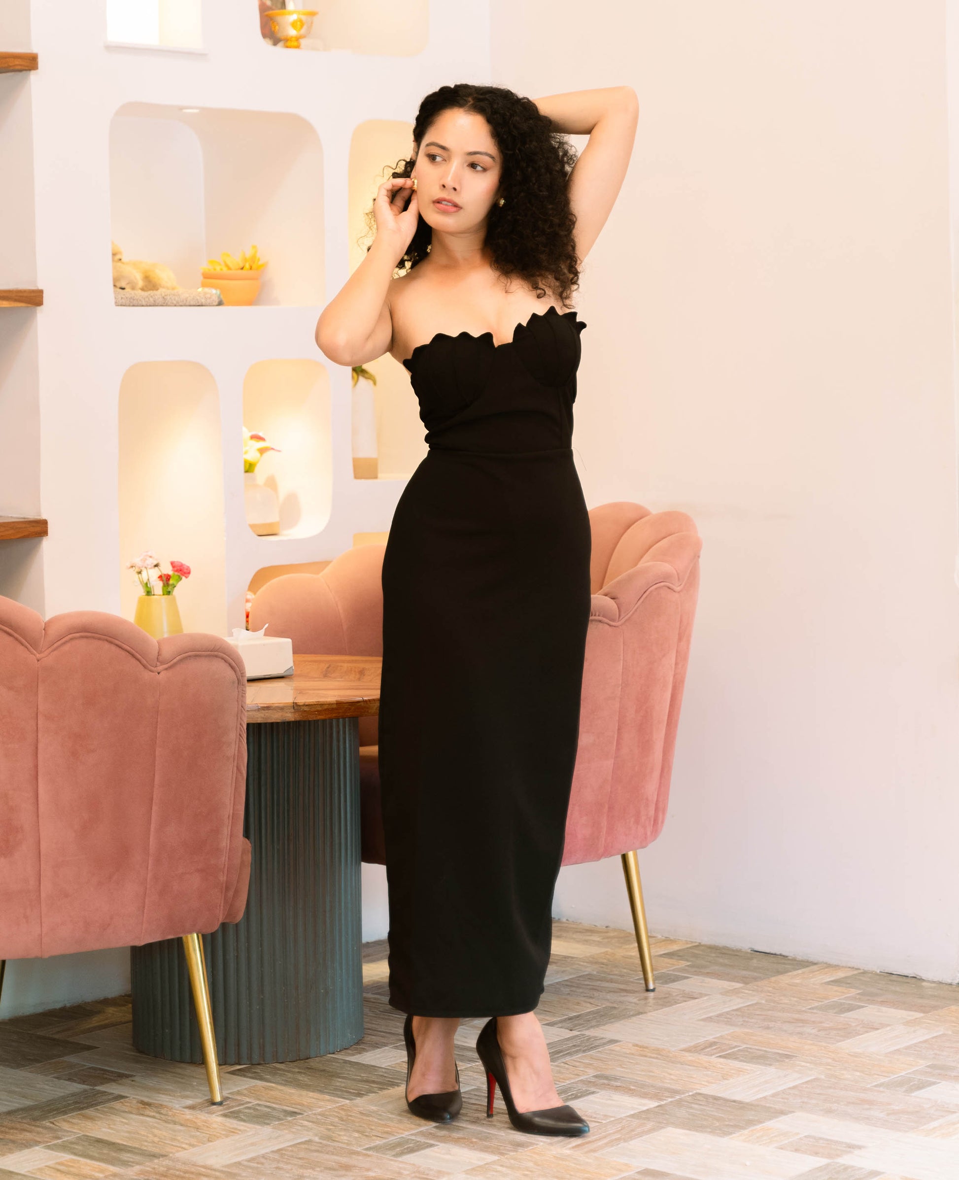 The Seashell Midi Dress is light and flowy with a pretty seashell-shaped bust. It’s great for beach trips, brunch, or holidays. Easy to wear and stylish, it brings a fun and fresh feel to your wardrobe.