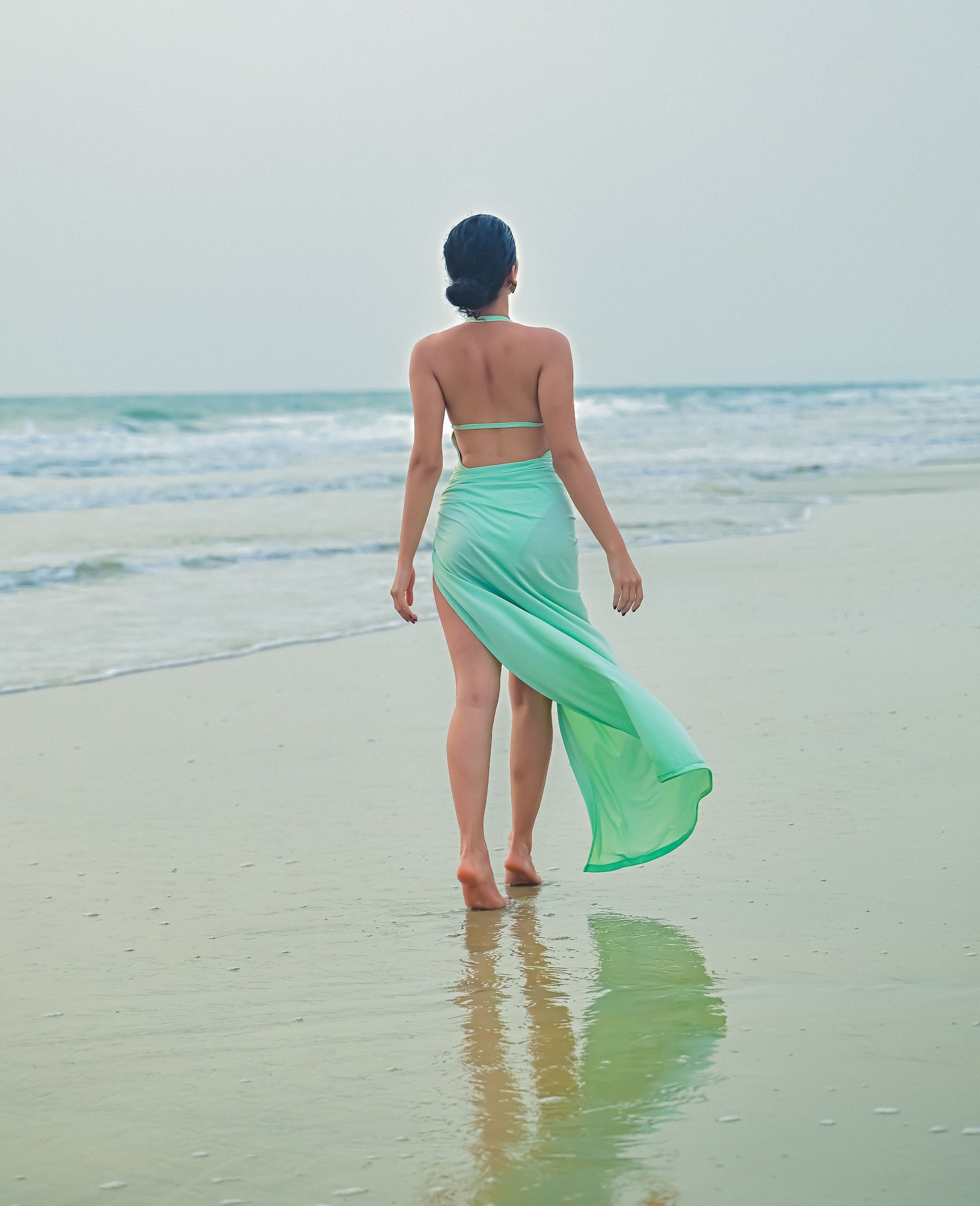 The attached skirt is soft, flowy, and semi-sheer with a high slit that adds a bold and elegant touch. The skirt flows beautifully with movement, giving a graceful beachside vibe. It’s a perfect mix of sexy and classy for vacations, beach shoots, or poolside events.